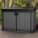 The Keter 6’x3.5′ Cortina Heavy Duty Plastic Storage Unit – Dark Grey is built for durability from bottom to top with a heavy-duty floor that can hold your heavier items and has a double wall build with steel reinforcement. The The Keter 6’x3.5′ Cortina Heavy Duty Plastic Storage Unit – Dark Grey is fully weather-resistant and low maintenance.